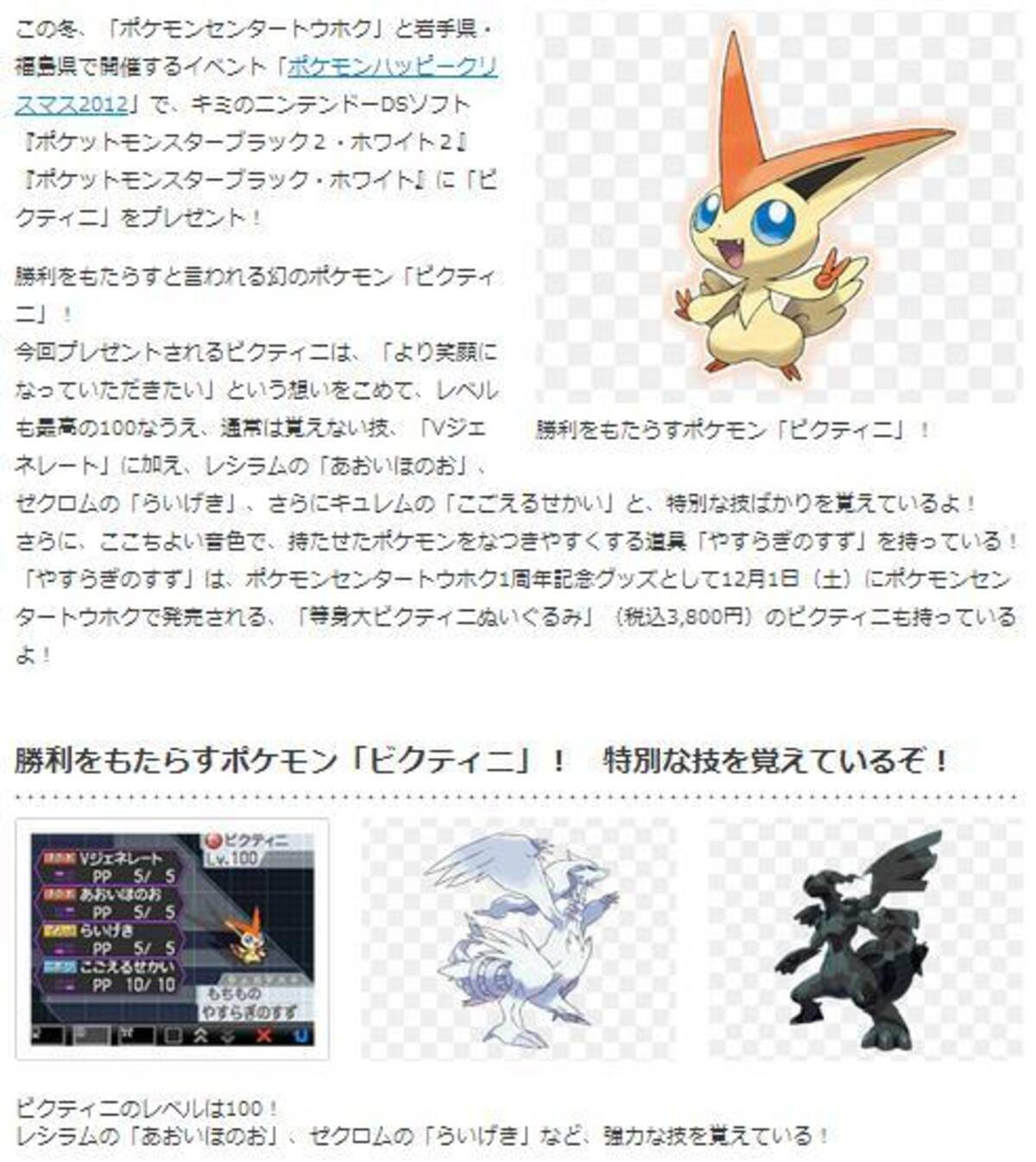 ポケットモンスター ブラック ホワイト シリーズに特別な ビクティニ プレゼント ポケセントウホク クリスマスイベントで 12年11月17日 エキサイトニュース